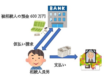 ・長男は被相続人(亡父)の葬儀費用及び未払いの医療費の支払いに充てるために、ABC銀行に対して預金の仮払いの請求を行った。